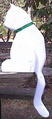 Playful CatThis is a 3 dimensional frisky cat hanging off the edge of the table or shelve and a Red or Green collar.